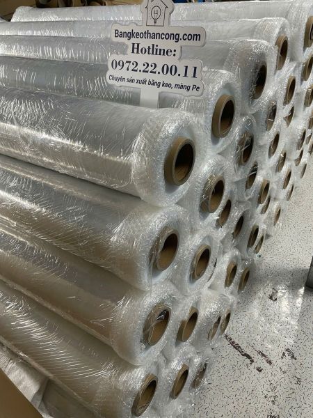 Màng PE (Polyethylene) khổ lớn, hay còn gọi là màng chít, màng co PE, là loại màng nhựa dẻo được sản xuất từ hạt nhựa HDPE hoặc LDPE nguyên sinh, có độ bền cao, khả năng co giãn vượt trội (lên đến 300%) và khả năng bám dính tốt. Với kích thước khổ rộng từ 50cm đến 2m và trọng lượng cuộn từ 1kg đến 30kg, màng PE khổ lớn được thiết kế chuyên dụng để đáp ứng nhu cầu đóng gói, bảo vệ hàng hóa trong nhiều lĩnh vực công nghiệp. Sản phẩm này có các đặc điểm nổi bật như chống thấm nước, chống bụi bẩn, chống va đập, và bảo vệ hàng hóa khỏi các yếu tố môi trường như độ ẩm, axit, hoặc tia UV.