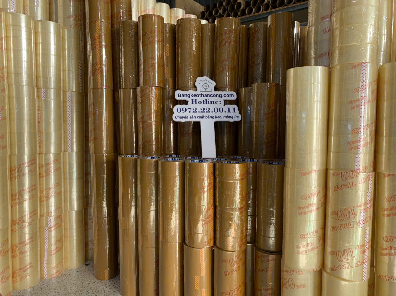 - Máy móc tiên tiến giúp kiểm soát chính xác độ dày màng OPP, lượng keo tráng, độ căng cuộn, đảm bảo mỗi cuộn băng keo đạt chuẩn: Độ dính vượt trội (>30N/25mm), Chịu nhiệt tốt (lên đến 60°C), Không để lại keo thừa sau khi gỡ