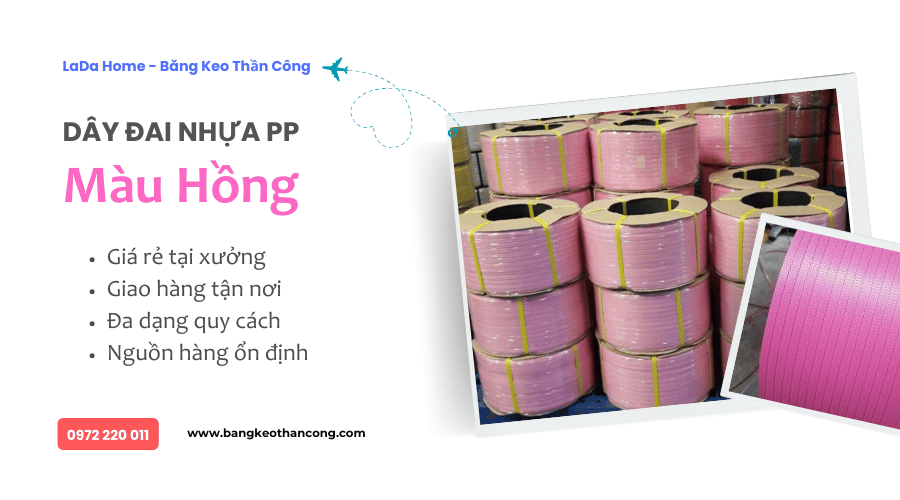 Thông tin chi tiết về sản phẩm dây đai nhựa PP màu hồng LaDa Home sản xuất